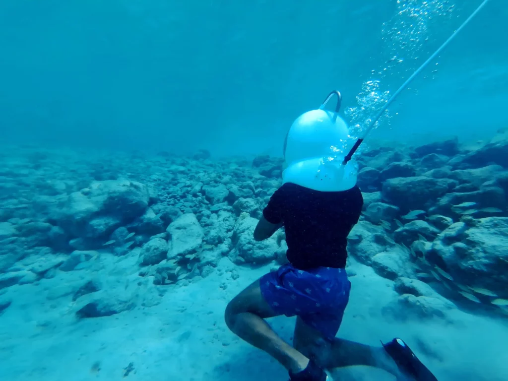 Stap in een compleet nieuwe onderwaterwereld! Met onze speciale Seawalker-helmen ontdek je van dichtbij het kleurrijke onderwaterleven van Curaçao — terwijl je gewoon comfortabel blijft ademen.